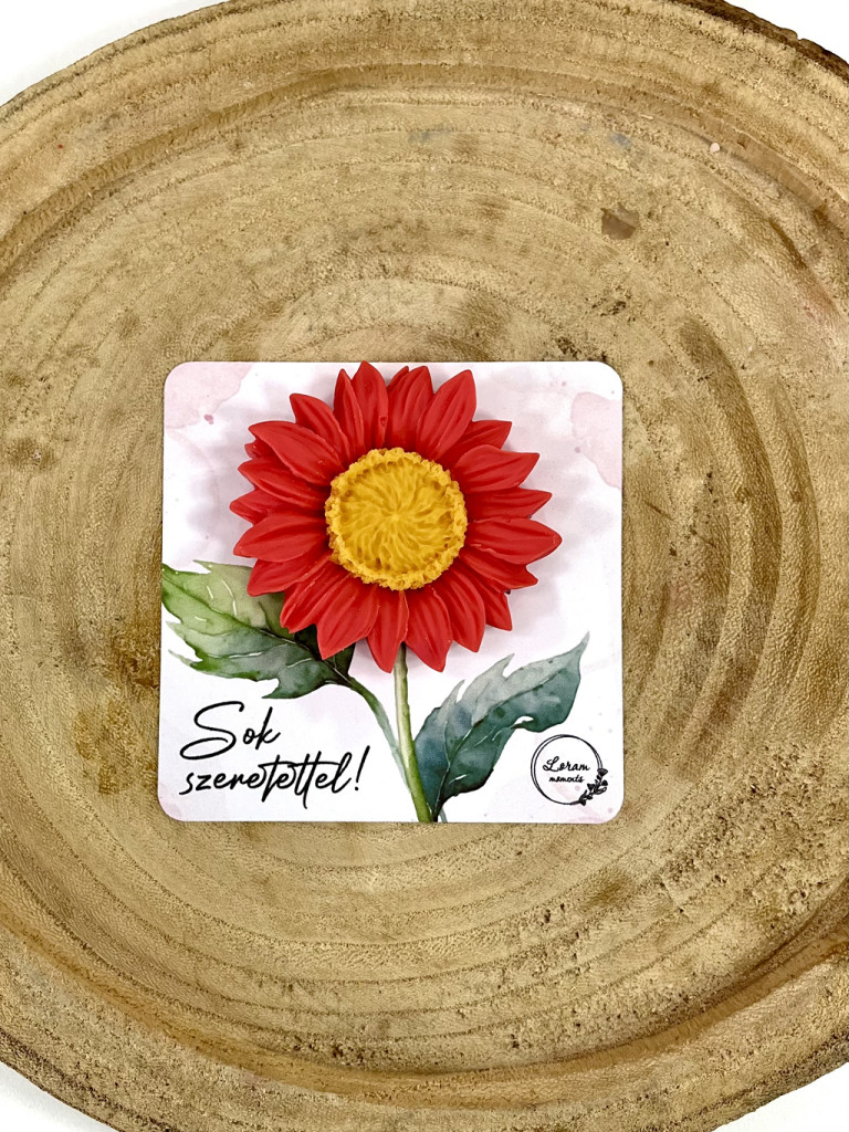 1 db Gerbera illatviasz dekoratív, "Sok szeretettel" feliratú kártyán.